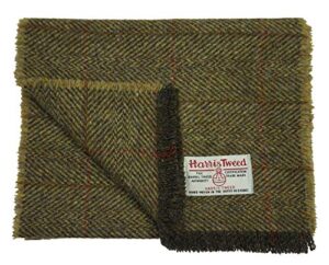 Harris-Tweed-Pure-Wool-Mens-Womens-Fringed-Scarf-OliveBrown-Overcheck-0