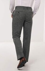 Dobell Harris Tweed Mens Grey Suit Trousers Regular Fit 100% Wool Herringbone