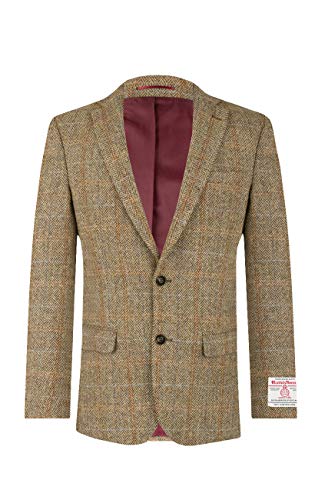Dobell Harris Tweed Mens Grey Suit Jacket Regular Fit 100% Wool Herringbone – 44, Brown