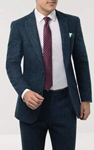 Dobell Harris Tweed Mens Blue Suit Jacket Regular Fit 100% Wool Herringbone