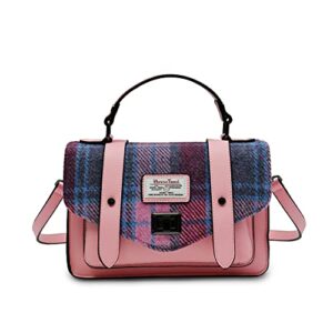 SNOW-PAW-Harris-Tweed-Pink-Blue-Tartan-Medium-Satchel-0