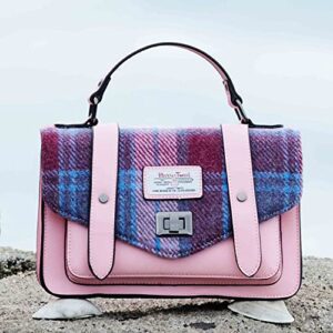 SNOW-PAW-Harris-Tweed-Pink-Blue-Tartan-Medium-Satchel-0-0