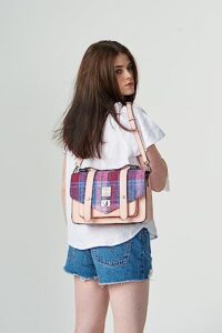 SNOW-PAW-Harris-Tweed-Pink-Blue-Tartan-Large-Satchel-0-2