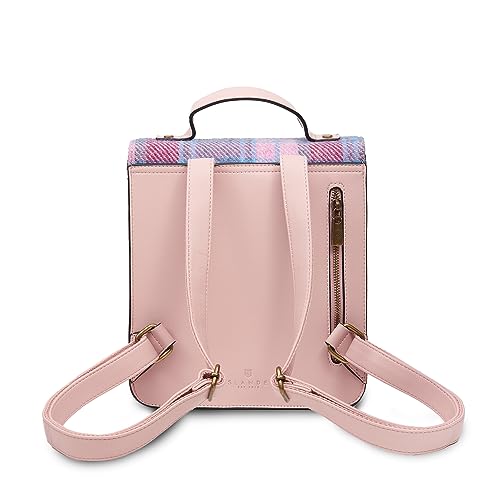 Islander® The Calton Backpack – Ladies Backpack with HARRIS TWEED – Pink Blue Tartan