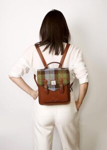 Islander® The Calton Backpack – Ladies Backpack with HARRIS TWEED – Chestnut Blue Tartan