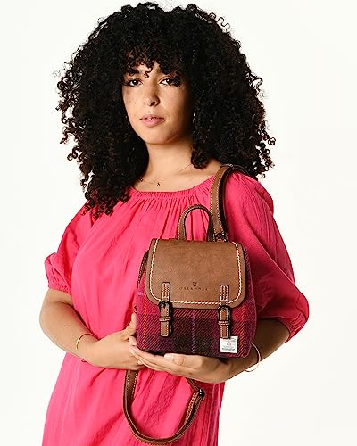 SNOW PAW Harris tweed The Mini Jura Backpack – Fuchsia Tartan