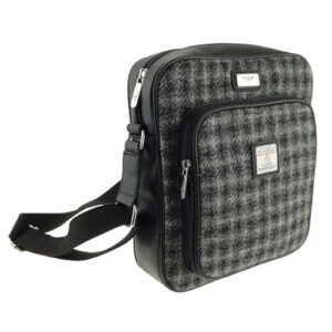 BRAW-CLANS-TARTANS-Harris-Tweed-Grey-Dogtooth-Tartan-Travel-Bag-Authentic-Gents-Handmade-Wool-Bag-with-Adjustable-Strap-and-Zip-Closure-Scottish-Traditional-accessory-for-Men-0